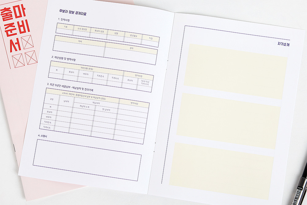 1. <출마준비서>의 공란을 모두 채워주세요.