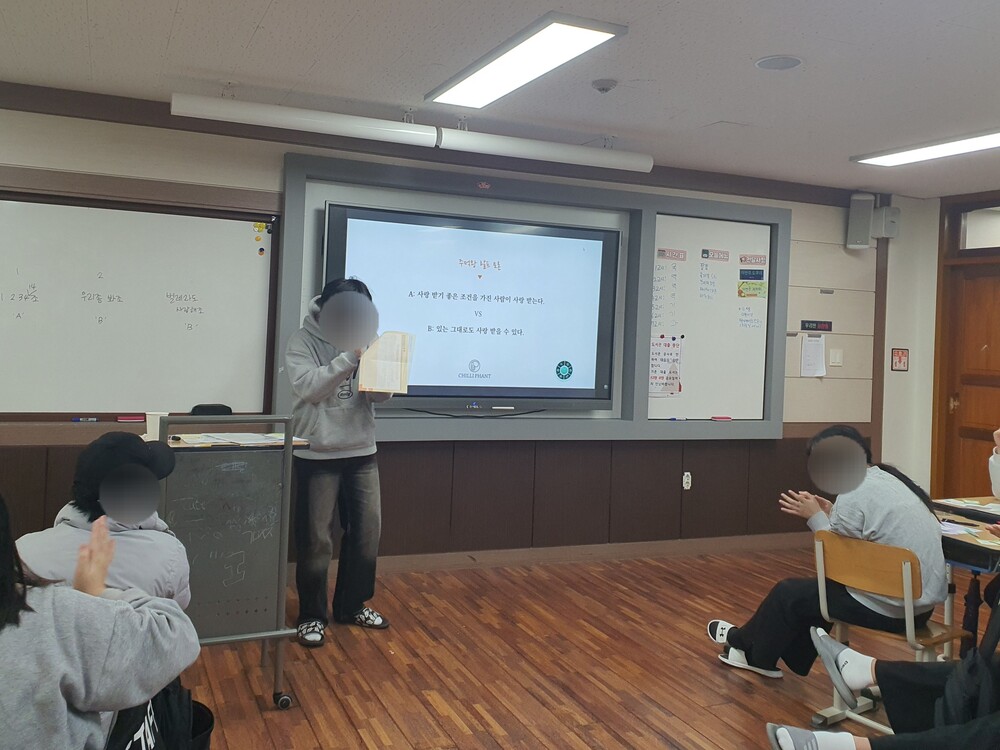나의 의견과 상관없이 우리 조의 주장으로 결정된 주제에 토론합니다.