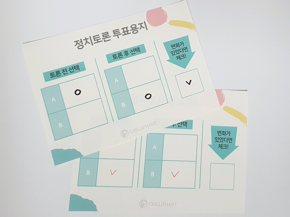"칠리펀트 토론키트"는 토론수업을 더 활발하게 진행하기 위하여 칠리펀트에서 자체 제작한 키트입니다.