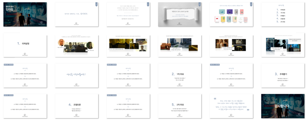 영화의 전체적인 줄거리를 프리젠테이션으로 소개하는 시간입니다.