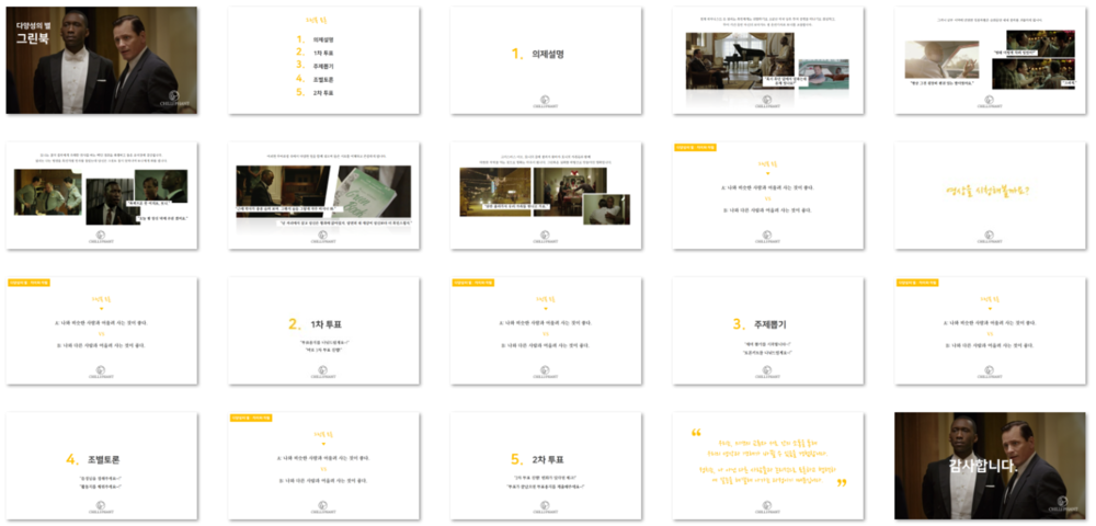 영화의 전체적인 줄거리를 프리젠테이션으로 소개하는 시간입니다.