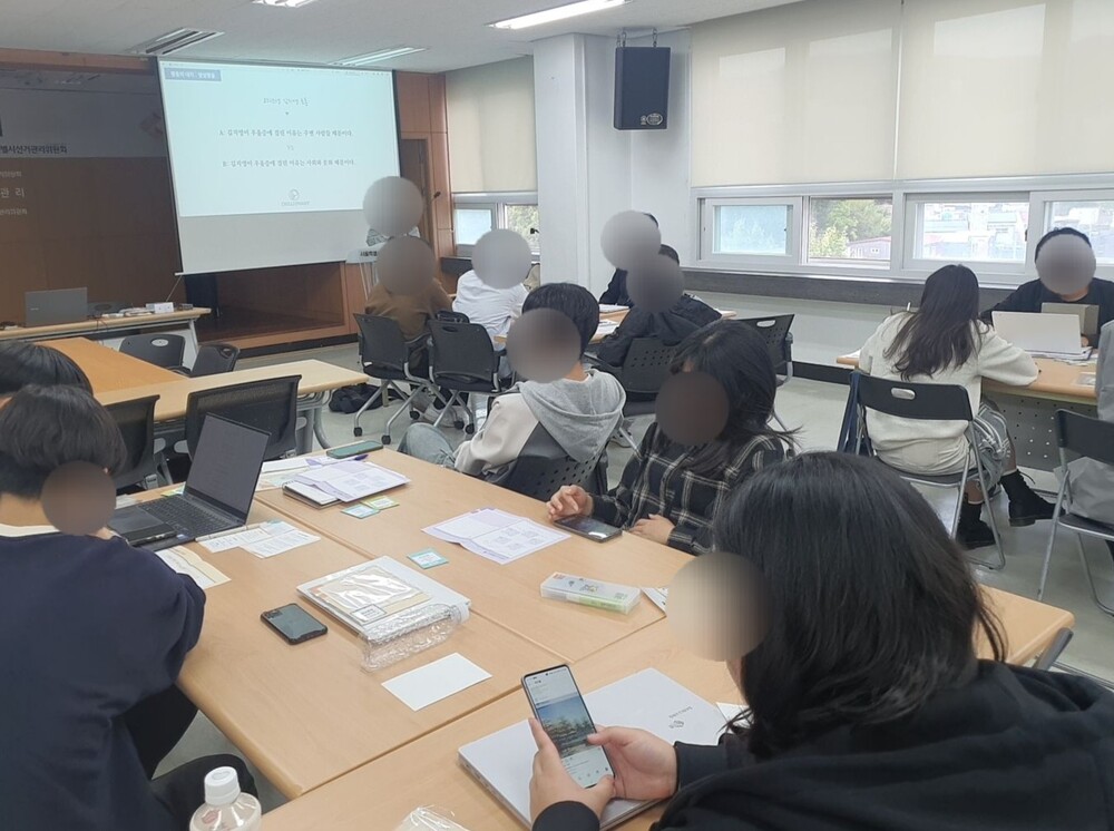 토론이 종료되면 각조의 듣정님들은 조의 논리를 정리하는 시간을 갖습니다.