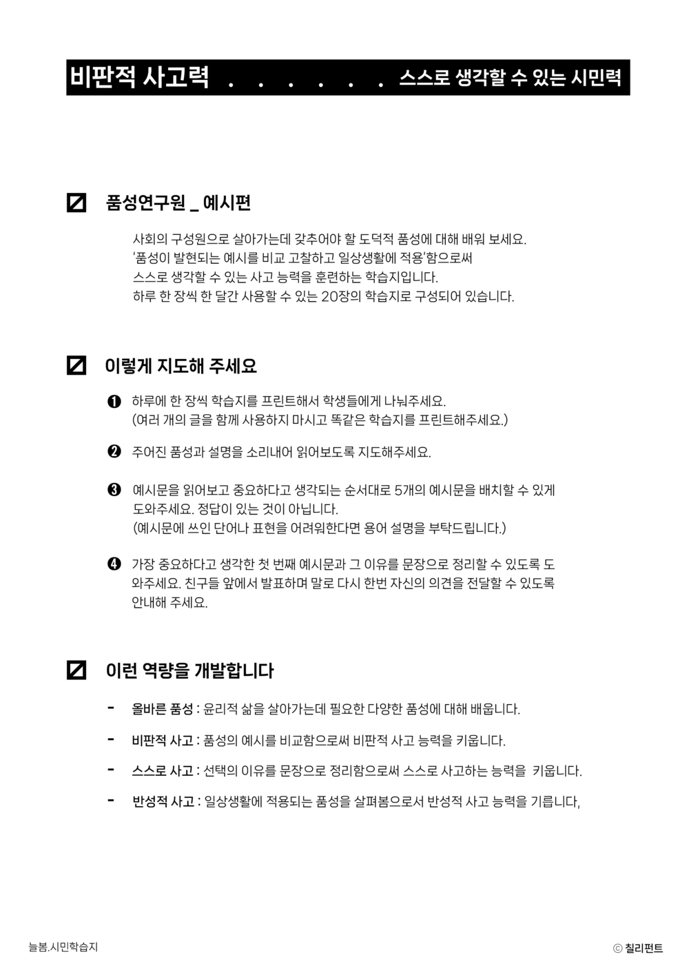 하루 한 장 인쇄해서 쓰는 PDF 학습지_★
