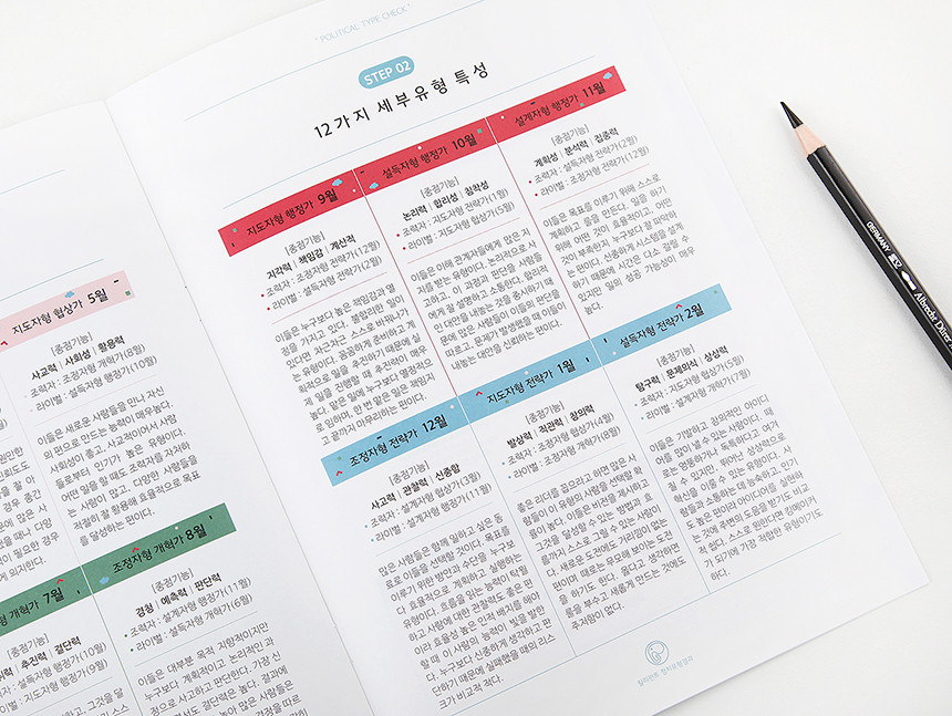 나의 세부유형을 체크하는 단계입니다. 1단계 나의 기본유형과 2단계 나의 강화능력을 알면 12가지로 구분된 세부유형 중 나의 세부유형을 확인할 수 있습니다. 12가지 세부유형은 각각 해당하는 달이 있습니다. 결과에 대한 상세설명은 결과지에서 확인하세요~!