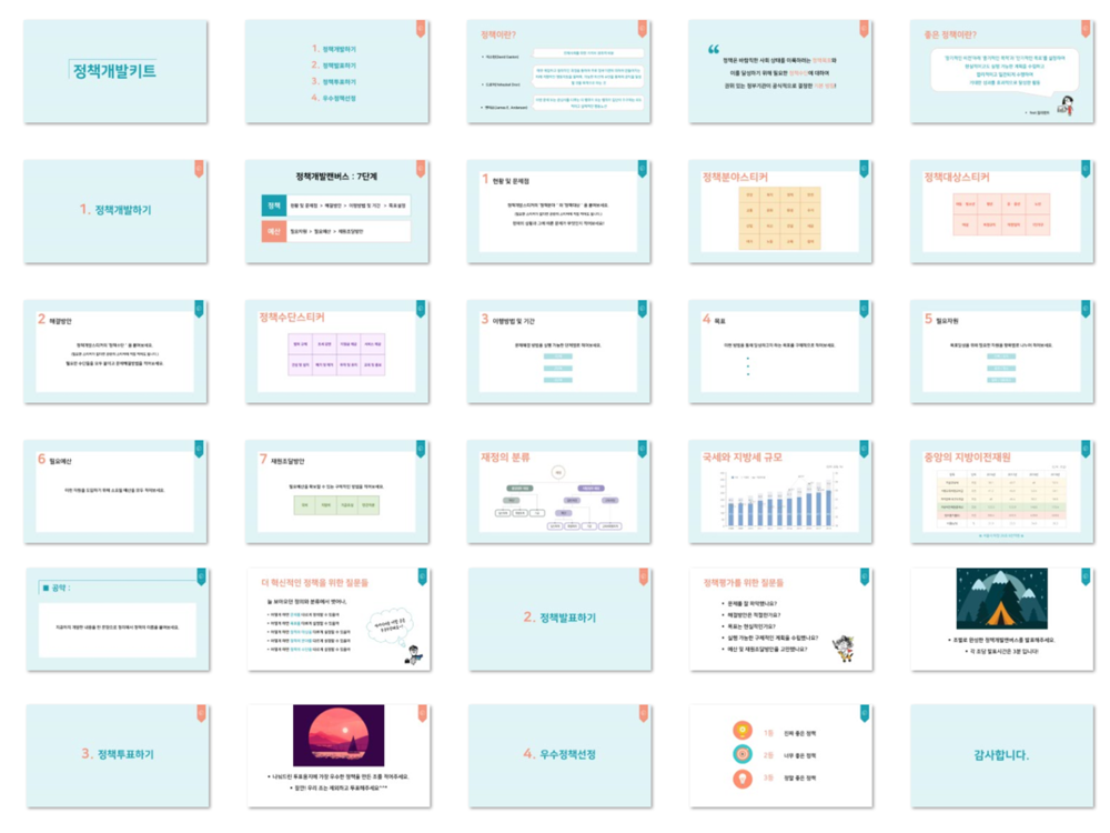 선정된 의제는 정책개발키트를 통해 하나의 정책으로 발전됩니다.