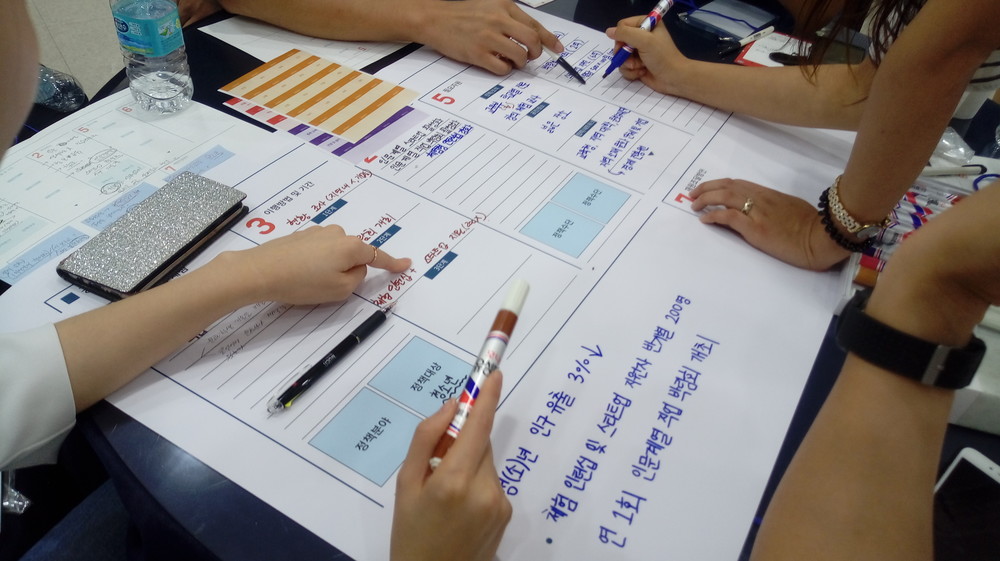 정책개발이 완료되면 조별로 돌아가며 우리팀의 정책을 소개하는 정책발표 시간을 갖습니다.